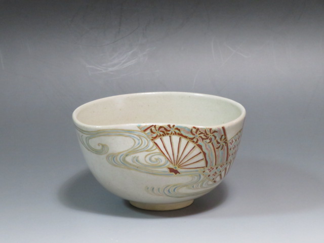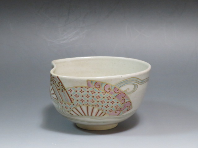 模仁清翁作 扇流し茶碗 5代清水六兵衛作