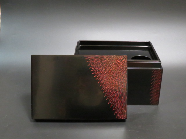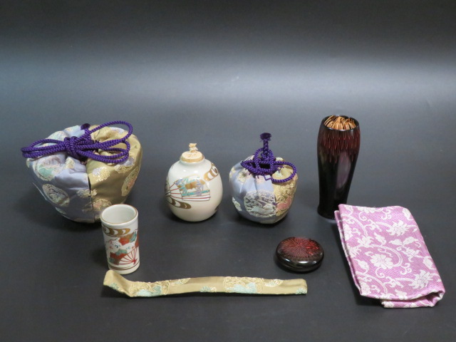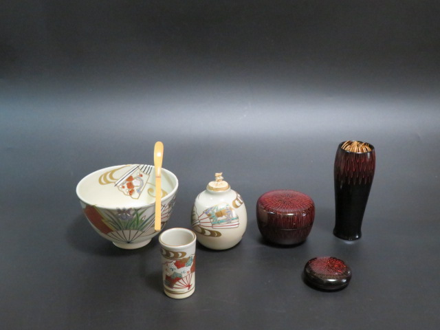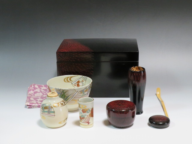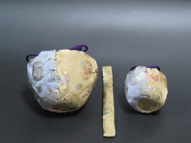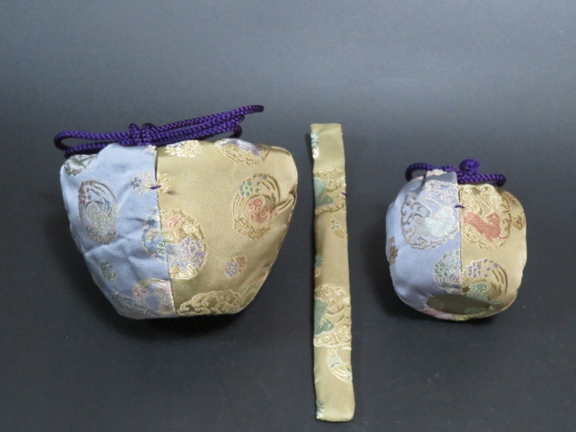 輪島塗の茶箱揃で、仕覆も綺麗です。外箱はありません。
