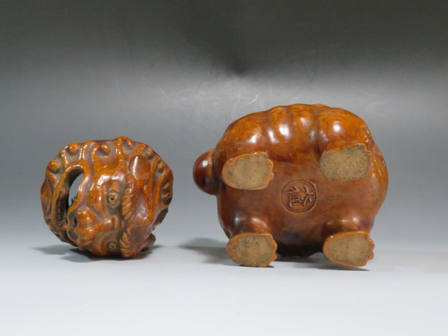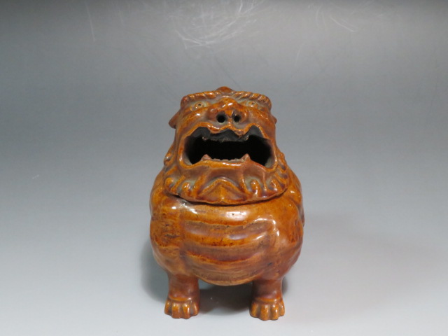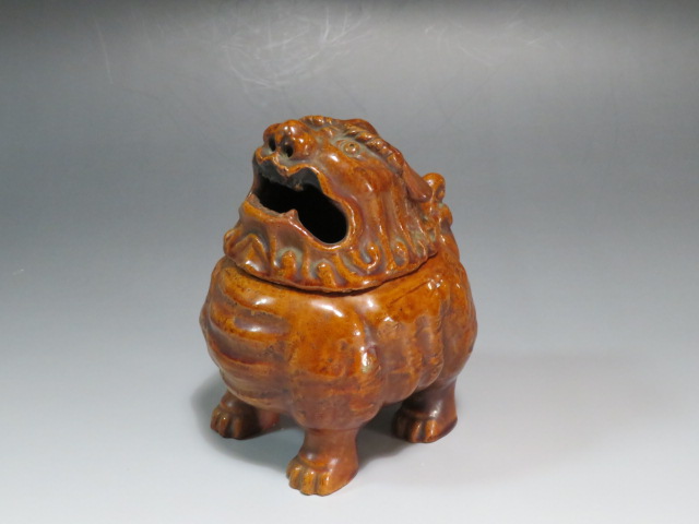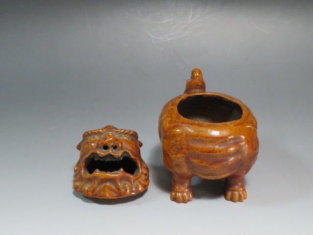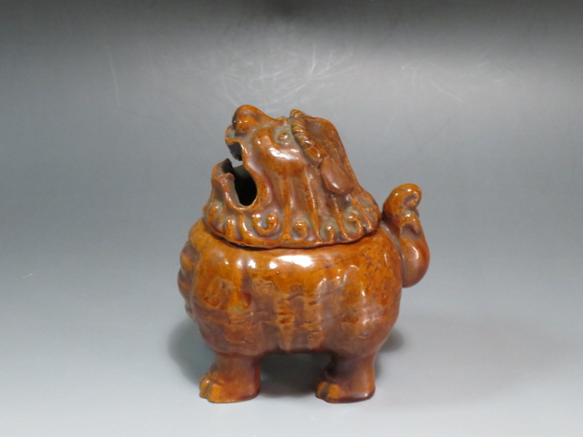 大樋焼 獅子香炉 6代 大樋長左衛門造 10代箱