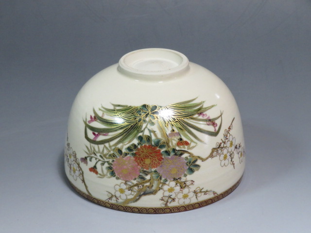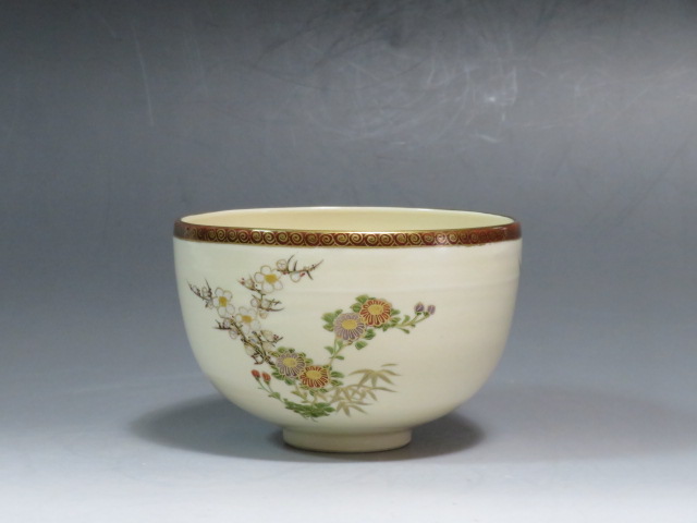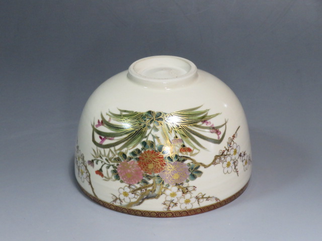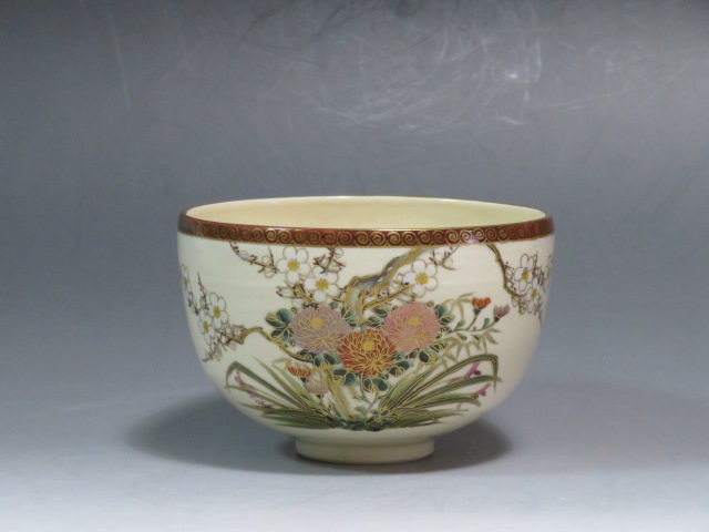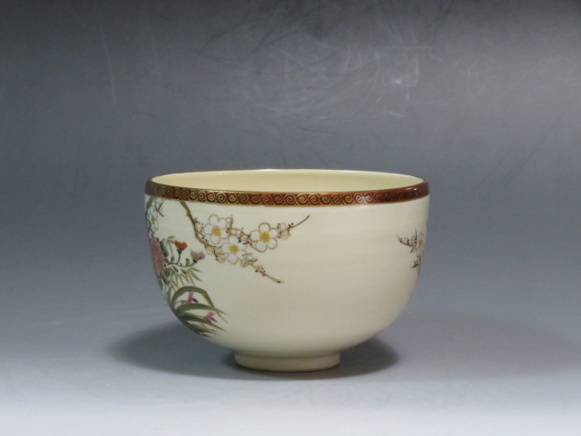 四君子の絵茶碗 京薩摩 岡田暁山造