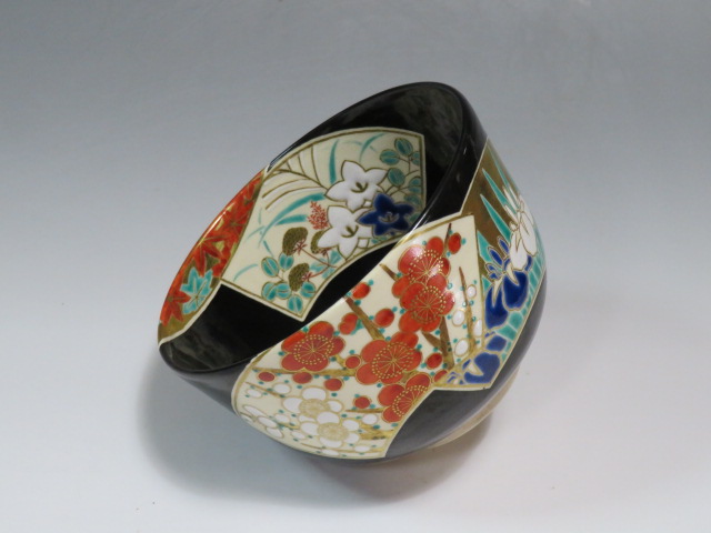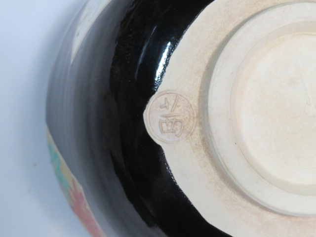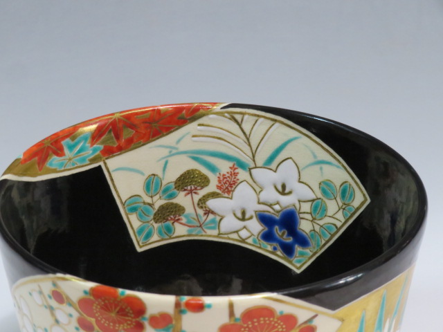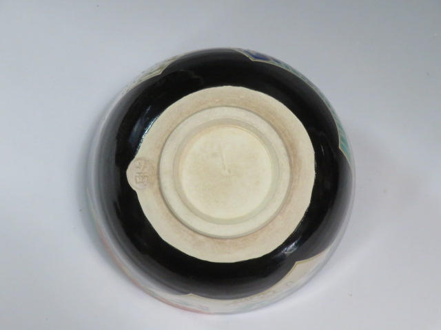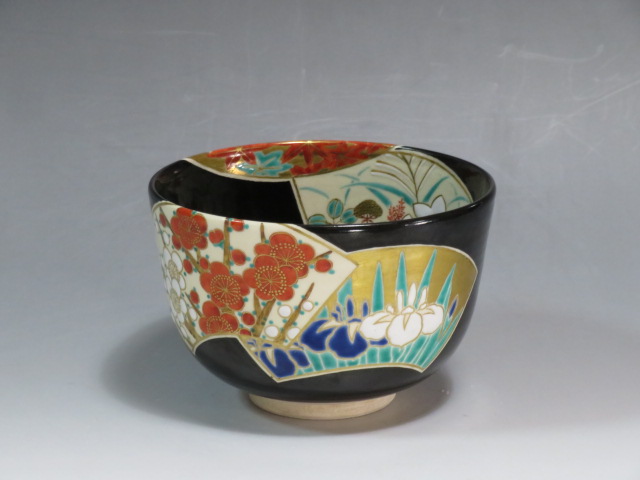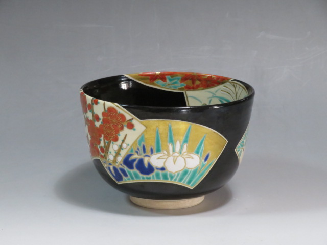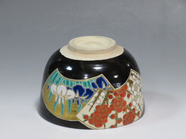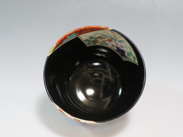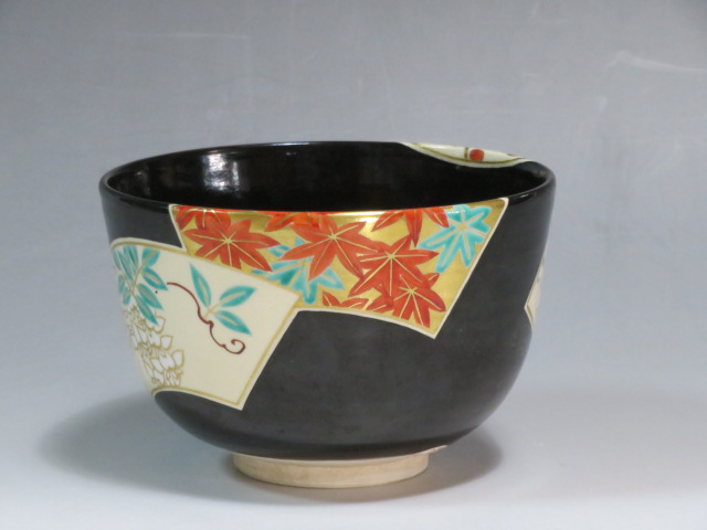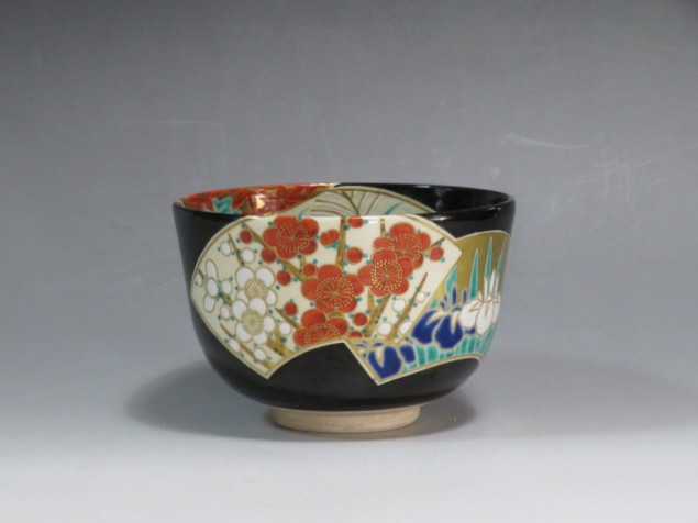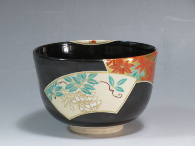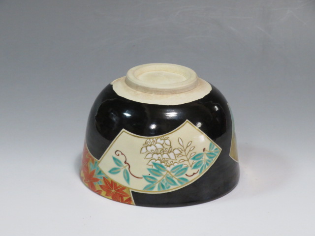 扇面絵茶碗 茜窯 岡田華渓造 鵬雲斎箱