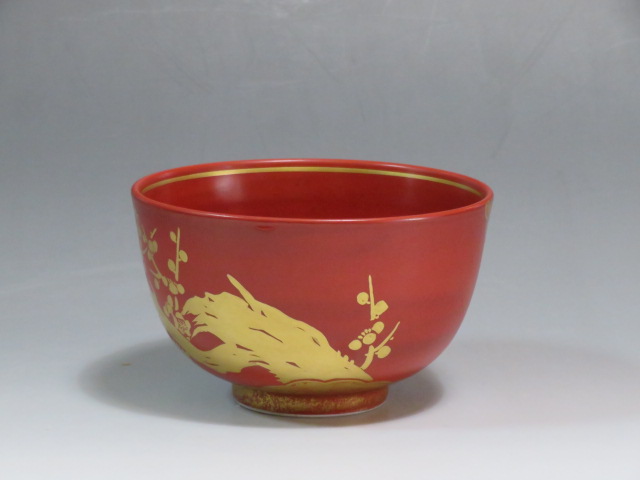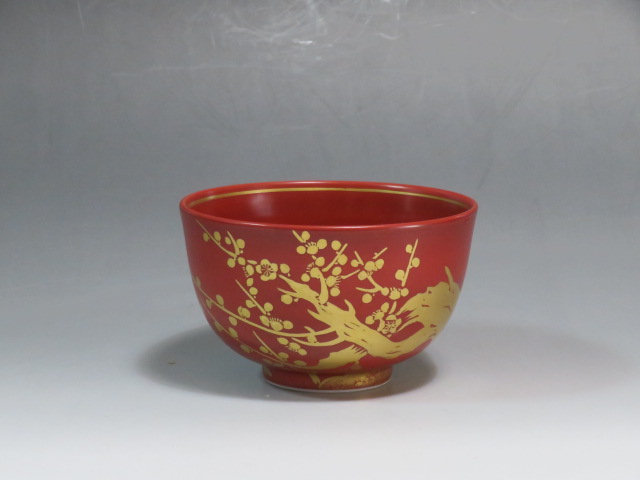 金襴手梅茶碗 4代 久世久宝造