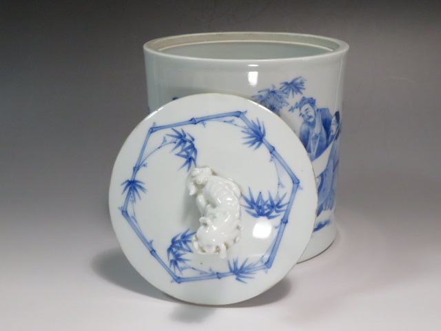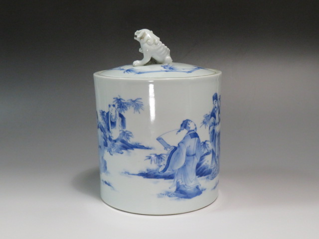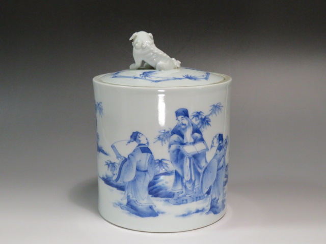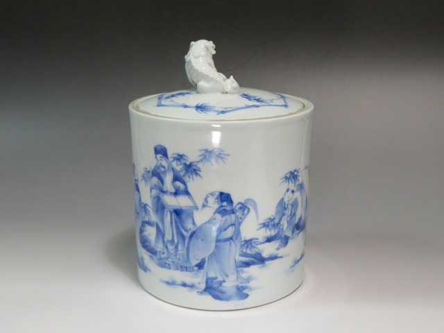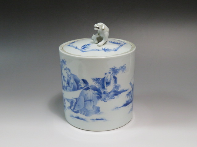 三河内 染付竹林七賢図水指 19世紀 (幕末~明治)