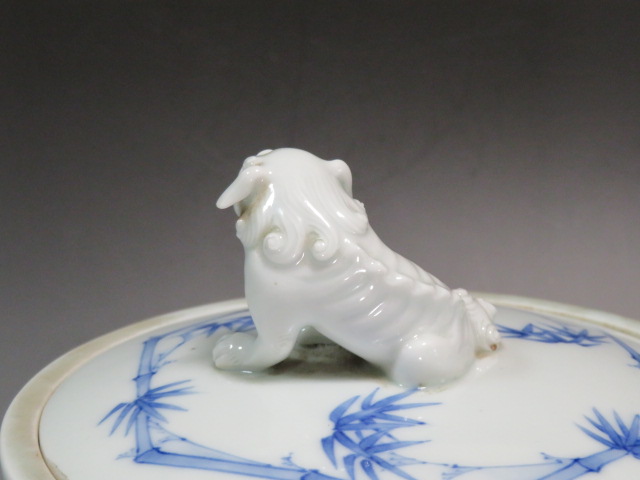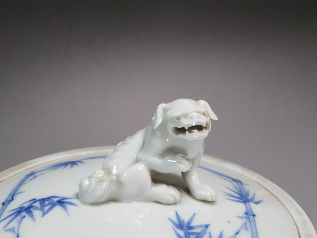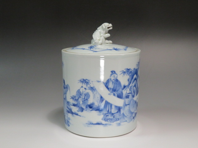 獅子摘みの竹林七賢人図の水指です。